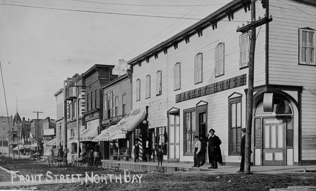 Ferguson, arriving in 1882, needed nails to construct his home, the area’s first house. Not knowing how to designate his camp to order the nails to, he looked at Lake Nipissing and ordered them to “the north bay” without much thought to naming the community.